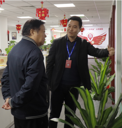 吴刚会长一行率先参观了藏象集团总部整体办公环境,以及集团各个业务板块运营建设情况。董事长孙昌杰对藏象企业文化、核心价值观以及集团整体的基本情况、发展历程和今后的发展思路进行了介绍。